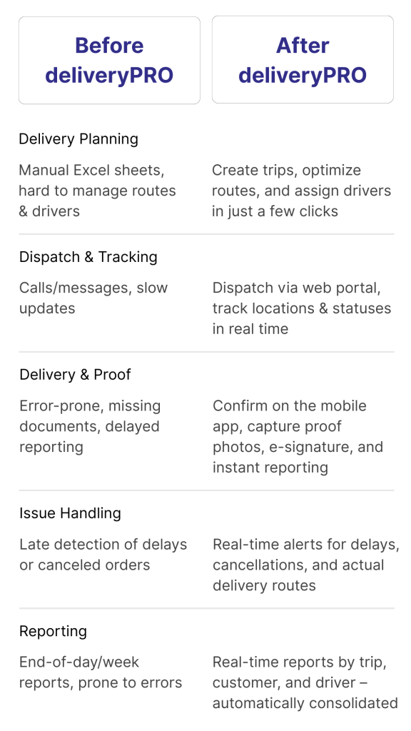 deliveryPRO is more than a delivery management software—it’s an intelligent operational solution that saves costs, improves efficiency, and accelerates market expansion.