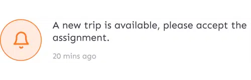 Drivers receive notifications for new trips and can accept or reject directly in the app.